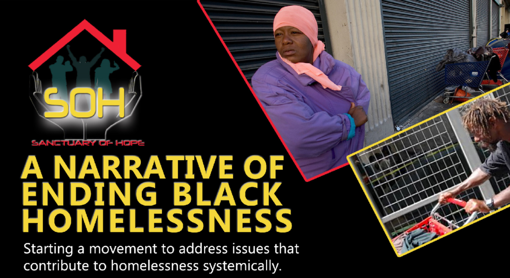 “A Narrative of Ending Black Homelessness will be an awakening movement to bring long overdue attention to Black poverty and homelessness and to call for culturally-specific prevention and intervention strategies,” explains Janet Denise Kelly, Executive Director of Sanctuary of Hope. “We’ve got to be frank and deliberate about stopping the pipeline and revolving door of Black people into these systems and to address racial inequity so that we lift Black people out conditions that have a historical and intergenerational genesis.”
